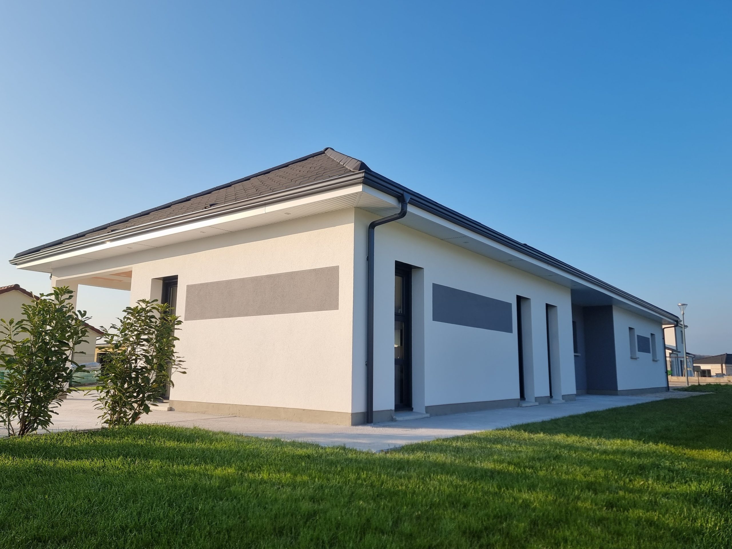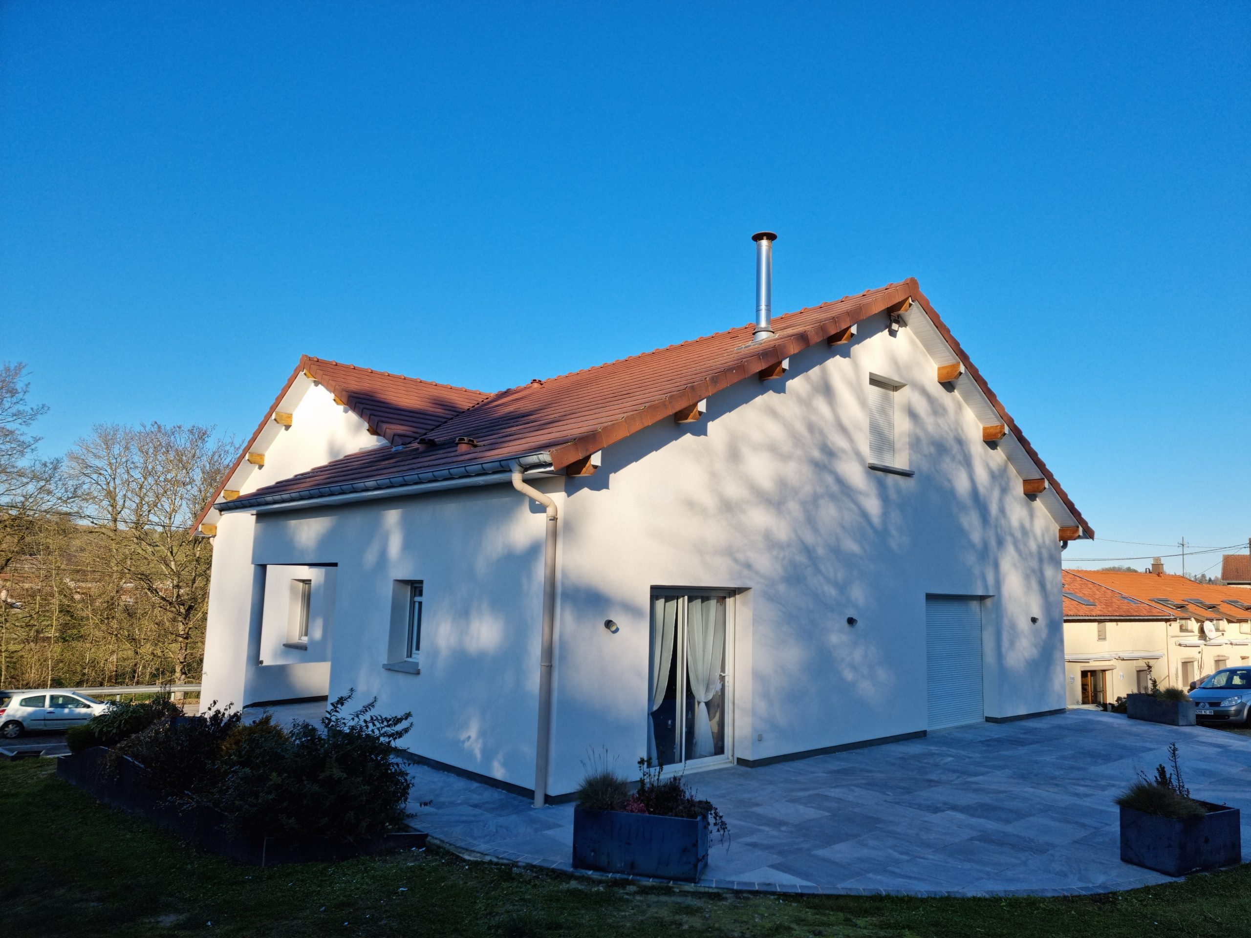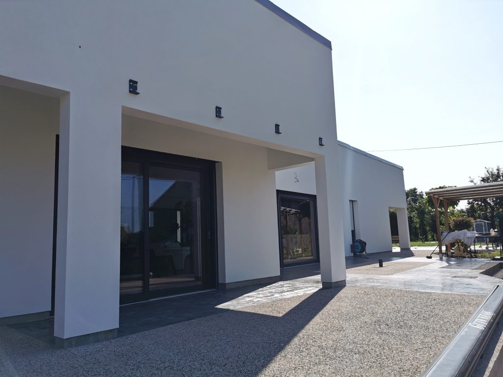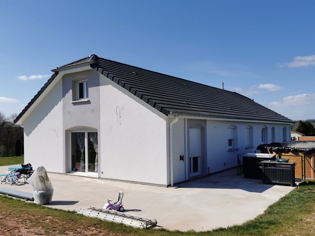 Après avoir renforcé les angles et les soubassements avec des baguettes enveloppant la construction, nous procédons à la projection d’un sous-enduit afin de redresser les supports, par la suite nous appliquons une sous-couche permettant de réguler le séchage ainsi que l’adhérence de la couche finale. Et enfin, pour finir un enduit de type RPE ou RME en finition talochée de STO est appliqué.